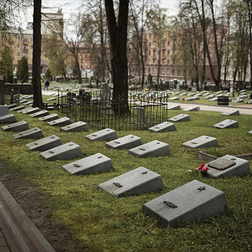 Apesar da ausência de um grande número de esculturas ou estruturas de bronze, os túmulos desta necrópole tem uma decoração de custo mais modesto mas ainda assim de bastante beleza e valor artístico: azulejos pintados à mão.
